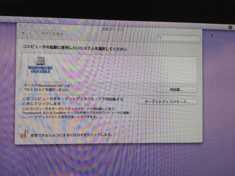 もし起動しないようなら、システム環境設定から起動ディスクからターゲットディスクモードで再起動をかけます。